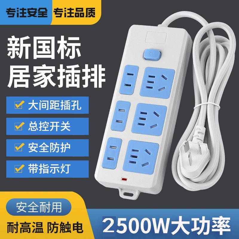 蓝白21孔插座接线板延长线带线